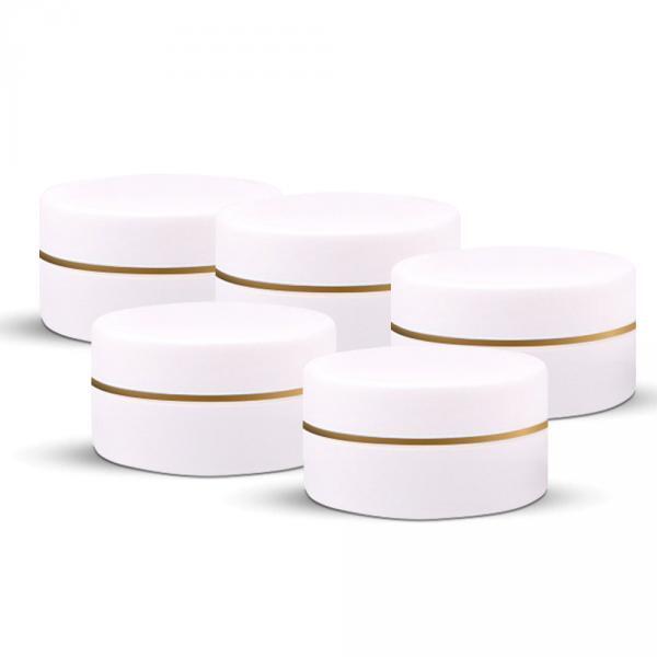 5ml-es fehér műanyag tégely, csomagban, kozmetikumok tárolásához. 1 csomagban 10db tégely található meg.